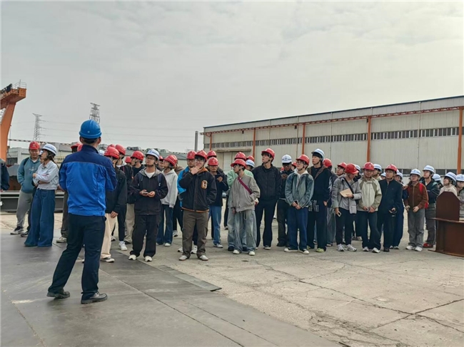 在现场参观环节,师生们先后走进港航安装公司展厅、安全教育宣传长廊、安全文化墙、各核心生产车间及VR安全体验馆。港航安装公司安全环保部工作人员全程陪同讲解,针对同学们提出的专业问题逐一耐心解答,确保实习效果。