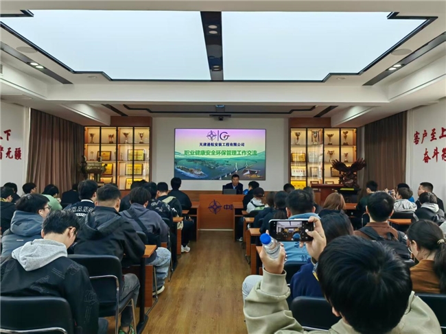 港航安装公司安全环保部围绕十大维度展开交流,具体包括安全文化建设、管理体系建设、标准化建设、班组建设、安全管理信息化建设、环保重点工作、安全环保投入保障及对标交流等内容,全面介绍了港航安装公司安全环保管理实践。随后,师生共同观看《入场安全须知》视频,详细了解进入作业现场的安全规范与注意事项。