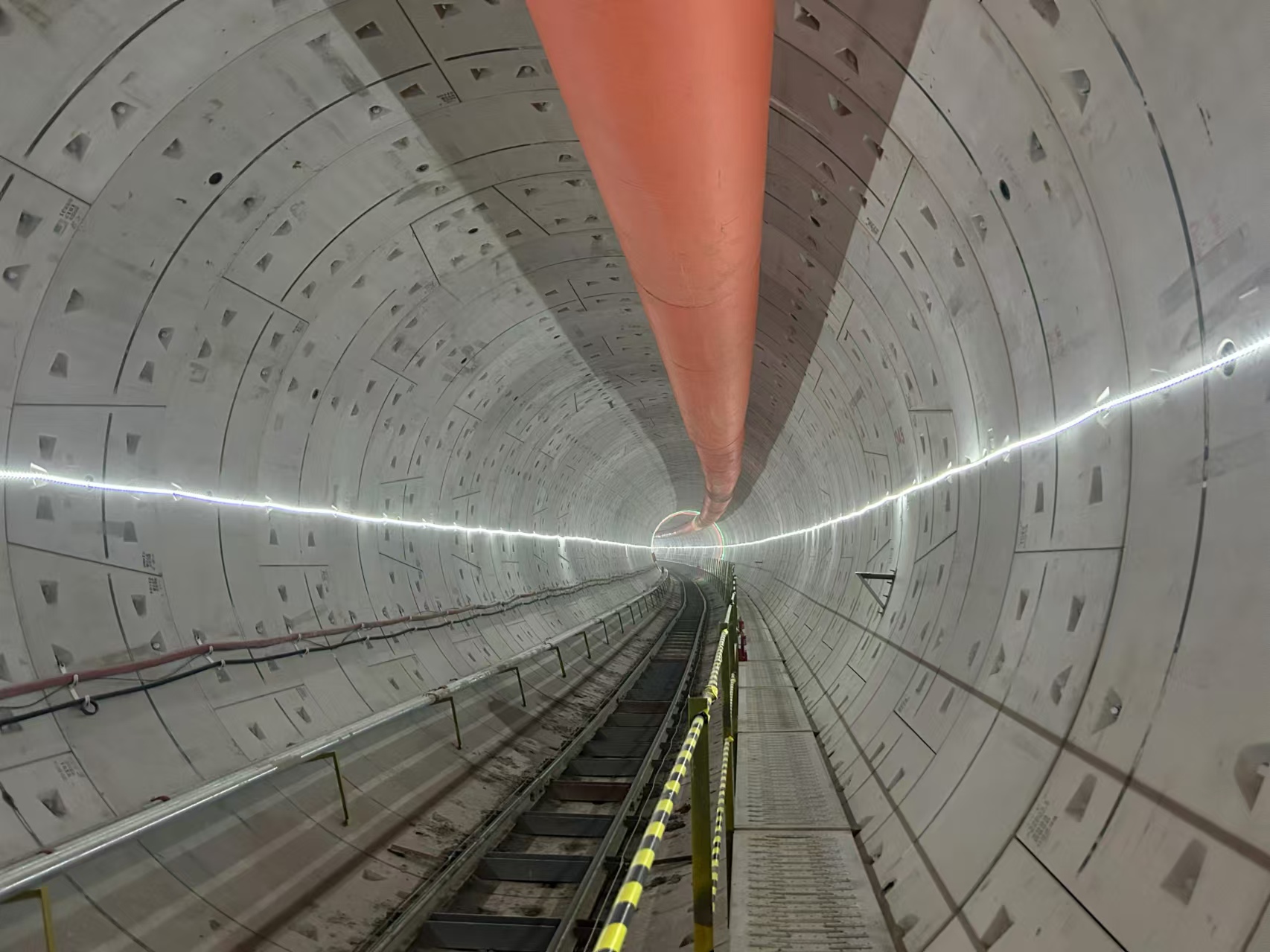 从管片进场到成型隧道,质量管控是一条环环相扣的锁链。从材料进场验收、止水条粘贴、管片选型、管片吊装运输、盾构掘进参数控制、管片拼装、同步注浆、二次注浆、螺栓复紧等都要严加管控,哪一环节出现松懈,“无破损、无渗漏、无错台”的目标就难以实现。一方面,项目部以岗位明白卡明晰各个岗位职责要求,以作业交底强调质量管控重点,保障交接班顺畅无误,把好盾构施工基础关,同时做好24小时巡查,重点盯控螺栓复紧、二次注浆等,严把关键细节。另一方面,实行隧道内“日检”制度,对当天掘进质量及昨日成型管片质量进行检查,形成区间质量日报。出现可能造成质量问题的苗头,立即组织分析会,将问题遏制在萌芽之中。盾构姿态控制是保证成型隧道质量的前提,项目部建立内部预警叫停机制,将盾构水平姿态超40毫米、管片错台超5毫米作为红线标准,触碰红线,按照四不放过原则,停机查明原因,前置质量风险。通过体系化管控为优质的工程质量保驾护航。