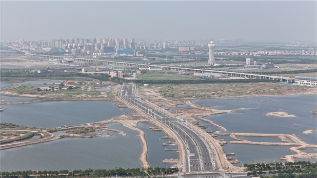 该工程位于滨旅北部片区中东部,北起航海道,向南依次与航泊道、航帆道相交,止于航苑道。道路总长度约1132.714m,为城市主干路,双向六车道,红线宽度为41m。随路敷设 d800mm-d1650mm雨水管道约2278米,d400mm-d800mm污水管道约2318米。本工程包括道路工程、排水工程、照明工程、绿化工程、交通工程、苗木及管线迁移工程等。