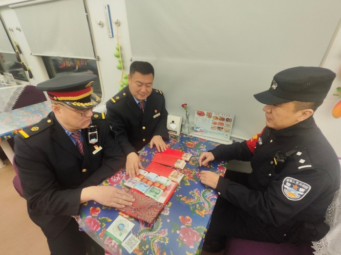 最终,经现场信息核验无误,这笔现金红包被完整无误交还至王女士手中。失主接过失而复得的钱款,感动不已,对钟晶拾金不昧的高尚品格和列车工作人员认真负责的工作态度赞不绝口,由衷感慨:“这笔钱是我特意为孩子们准备的压岁钱,有各种面额的现金,亲手交给孩子,孩子们会特别开心,比微信转账更有意义,我到现在都不知道丢了,真的太感谢铁路工作人员了!”