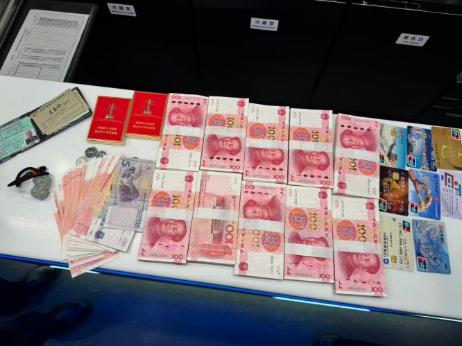 列车长第一时间联系乘警到场,共同对包内物品进行清点核对。经清点,包内装有现金104132.2元、玉佩一枚、银行卡七张,价值较高。列车长刘琦严格按照规定,立即编制客运记录,准备与车站办理失物交接手续,全力保障旅客财产安全。