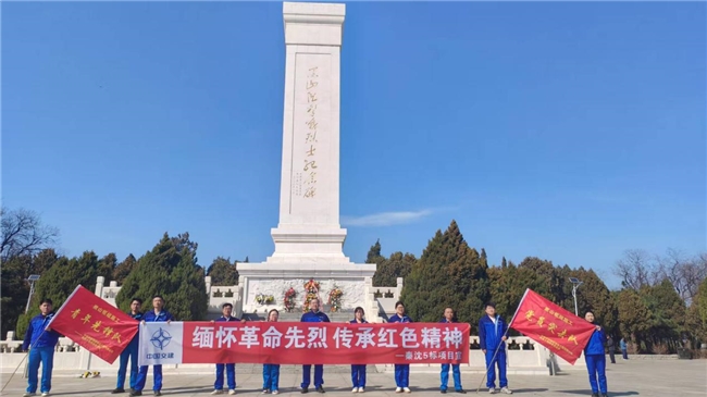 活动现场庄严肃穆,全体人员整齐列队,在烈士纪念碑前肃立默哀、行三鞠躬礼,寄托对革命先烈的深切哀思。随后,大家依次敬献鲜花、绕行瞻仰纪念碑,以朴素方式告慰英灵。项目书记发表讲话,号召全体人员传承先烈精神,将缅怀之情转化为施工动力,以实干实绩告慰先烈。