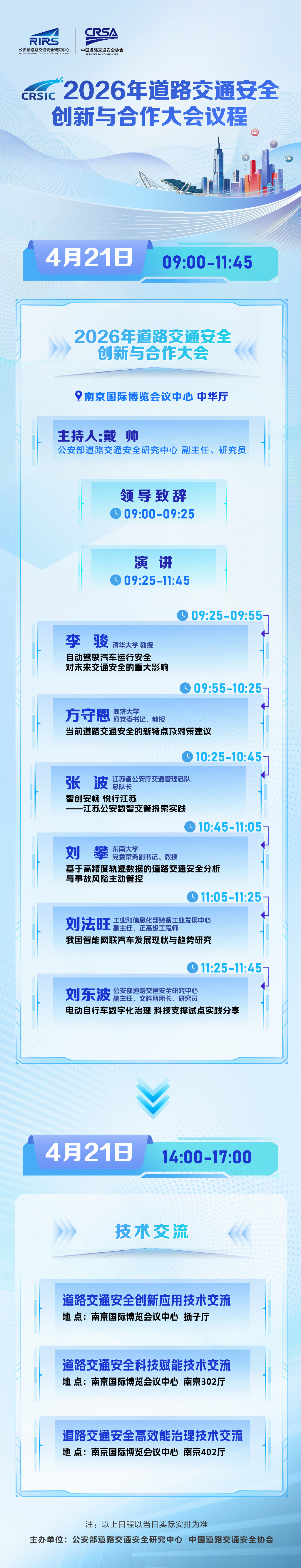 下午,三场聚焦道路交通安全创新应用、科技赋能、高效能治理的技术交流活动将同期举办。