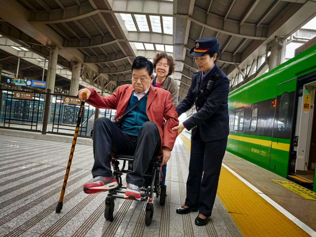 站台上,轮椅缓缓推远,列车长和乘务员们挥手目送。这趟横跨千里的归家路上,铁路人用坚实的臂膀和细致的服务,诠释着“人民铁路”的温暖含义——正如车厢里那位旅客未说完的话:铁路是人民的铁路,永远在身边。