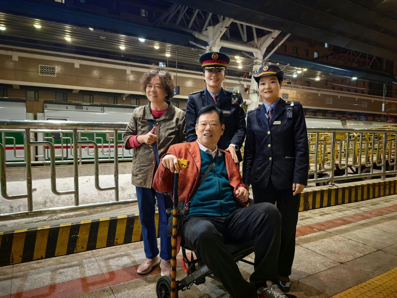 了解情况后,列车长立即通知乘务员秦娟在车门口做好迎接准备。她小心翼翼搀扶叔叔上车,秦娟则提着行李、推着轮椅紧随其后。车厢里,目睹这一幕的旅客纷纷感叹:“真是人民铁路为人民!”