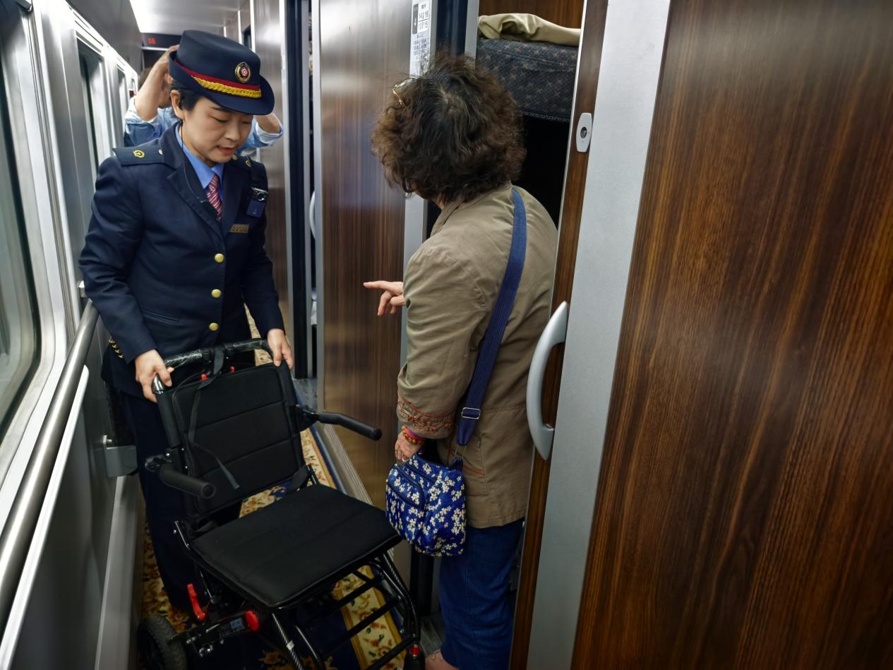 “阿姨,怎么不在北京多待两天,这么快就要回西安?”列车长关切地问。阿姨语气急促:“家里突发状况,我跟你叔叔着急回去。这一路上来回奔波,叔叔行动不便,要不是遇到你们铁路工作人员帮忙推轮椅,我连车都赶不上啊!”