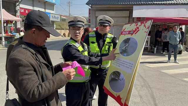 在辖区农村集市,民警通过面对面点对点的方式,针对4·29甘肃省酒泉市交通事故以及近年来绥德辖区农村发生的亡人交通事故进行深入剖析。对辖区易肇事肇祸路口向群众进行依次解析,并且为群众教授紧急避险常识。