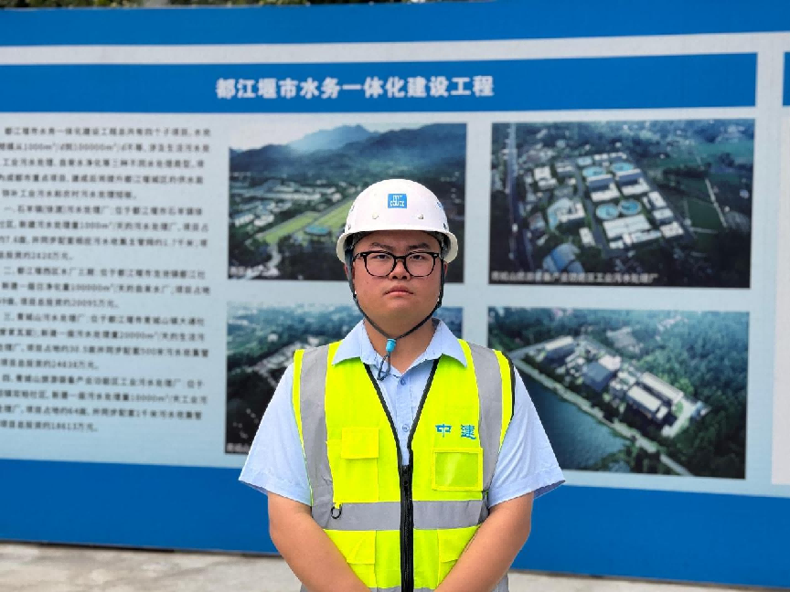 他是都江堰水务项目张禹涛,自2023年毕业后加入中建交通,便扎根项目一线,在勤学实践中,完成了从建筑“新人”到责任工程师的蜕变。