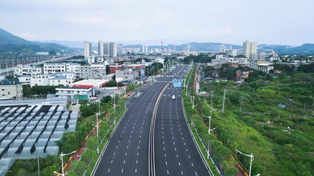 中交路建光明温泉产业园项目位于福建省闽侯县荆溪镇,项目西起光明村,下穿昌福铁路与绕城高速高架桥,串联滨江中大道、荆溪大道、龙山路、入园路,东接三环接线全长约4.17公里,按城市主干路标准建设,双向8车道,设计时速50公里,主要施工内容包括甘洪路扩宽改造以及交通信号灯、路灯、雨水污水管网等配套设施。