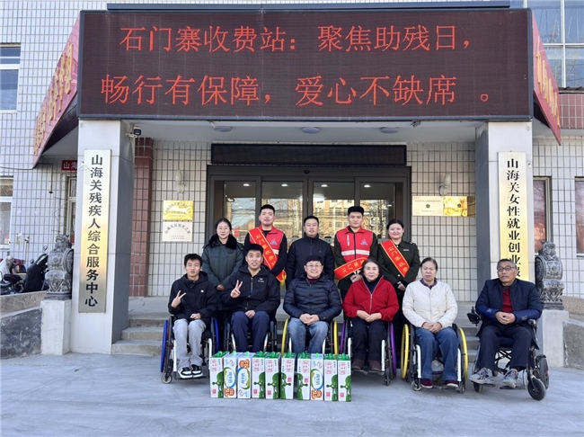 人民交通讯(韩杨)在第34个“国际残疾人日”来临之际,中交建冀交高速公路投资发展有限公司京秦高速遵秦段石门寨收费站为传递对残疾人朋友的关怀与敬意,12月3日,组织志愿者团队前往山海关残疾人综合服务中心,开展主题慰问活动,并在活动现场与服务中心正式达成常年合作伙伴关系,将“节日关怀”升级为“长效帮扶”,为残疾人朋友的“匠心逐梦路”筑牢支撑。