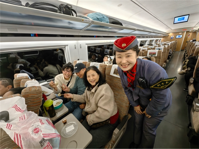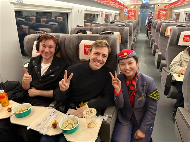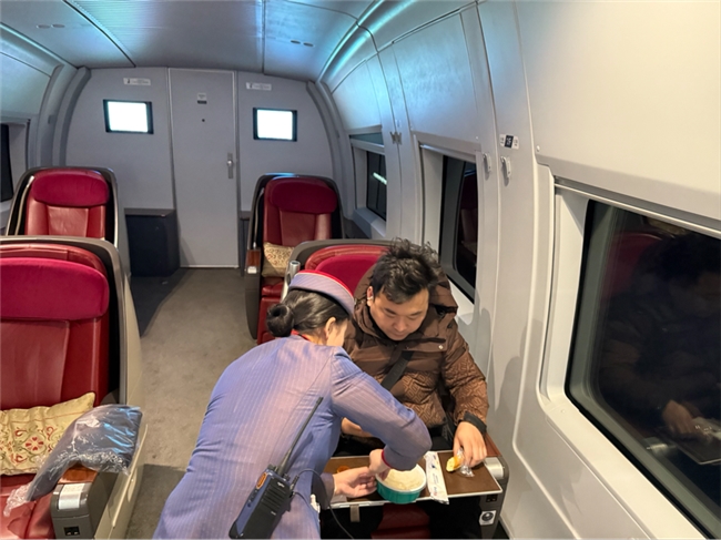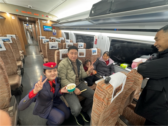 与此同时,乘务员们化身“冬至宣传员”,穿梭在车厢各个角落,向外宾以及其他旅客们娓娓道来冬至的由来与各地习俗,还精心组织了趣味问答活动。“冬至吃饺子的习俗和哪位名医有关?”“南方冬至有哪些特色美食?”一个个有趣的问题,引得旅客们踊跃参与,欢笑声、讨论声此起彼伏,原本略显枯燥的旅途变得生动有趣,车厢俨然成了充满欢声笑语的移动家园。