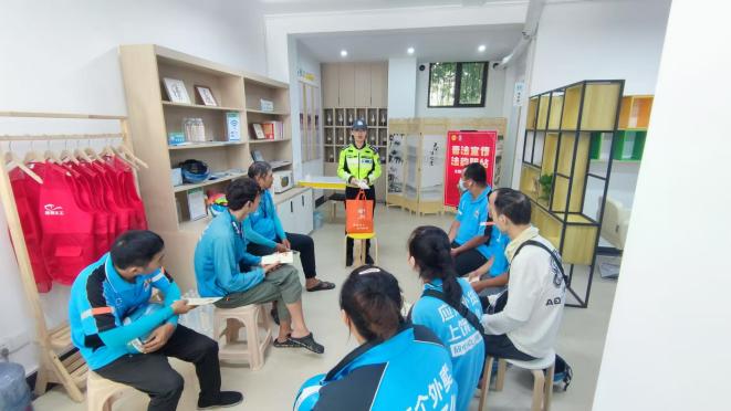 2025年2月,凤凰湖社区组建了一支由外卖骑手、快递员组成的“凤凰湖平安骑士”志愿队,依托其“走千条路、进万家门”的职业优势,化身社区安全的“移动探头”,在日常配送中协助开展道路安全隐患排查,并建立“安全巡查微信群”,实时通报隐患点位,今年以来协助化解井盖破损、警示桩损坏等道路安全隐患8处。在辖区凯旋名都小区,社区结合小区内景观桥腐坏维修,设置“交通安全茶话角”,讲安全故事,学交通知识。为解决部分家长接送途中偶尔忘戴或未携带头盔的困境,社区在辖区幼儿园创新设立园内“共享头盔”便民服务点,提供“即借即用、及时归还”的共享服务,借用时只需在登记本上填写基本信息即可免费使用,并于次日归还给幼儿园指定负责人。同时,针对辖区南方家园建材市场电瓶三轮车多的现象,为提升电瓶三轮车夜间行驶安全性,社区实施“反光条全覆盖工程”,安排工作人员、网格员为电瓶三轮车统一张贴反光条。通过系列的举措,进一步降低交通安全隐患,保障居民平安出行。