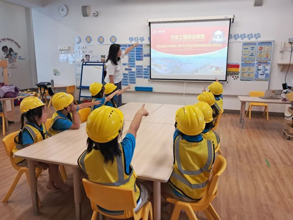 在项目信息中心,孩子们被大型多媒体屏幕上播放的地铁站施工3D动画所吸引。通过动态演示,复杂的施工流程变得生动形象,孩子们逐步了解了地铁车站这一“地下之家”的建造过程。在模拟隧道体验区,孩子们身临其境般感受“地铁穿梭”的奇妙旅程,兴奋不已。工程师还适时融入了施工安全知识和应急通道等内容,帮助孩子们树立基本的安全意识。