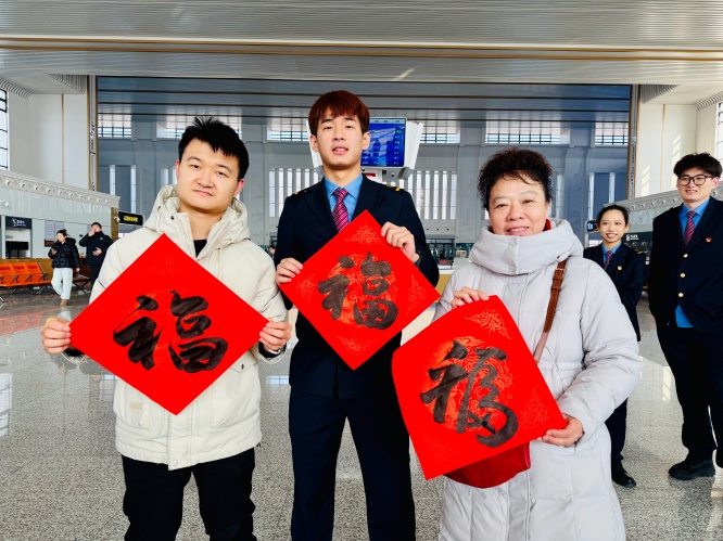 为全力营造平安、有序、温馨的春运出行氛围,进一步展示铁路优质服务形象,中国铁路沈阳局集团公司沈阳车务段组织青年志愿者在春运首日开展丰富多彩的文化活动,为踏上归乡之旅的旅客送上满满的新春祝福。