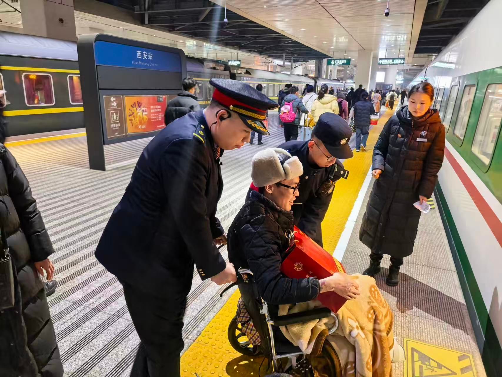 人民交通讯(韩杨 通讯员 陈维朝)2026年3月1日,春运返程高峰仍在持续,中国铁路客流平稳有序。当日,由列车长刘直值乘的D180次列车在西安站放行期间,上演了一幕暖心帮扶的动人场景,用真情服务为春运旅途增添了浓浓暖意。
