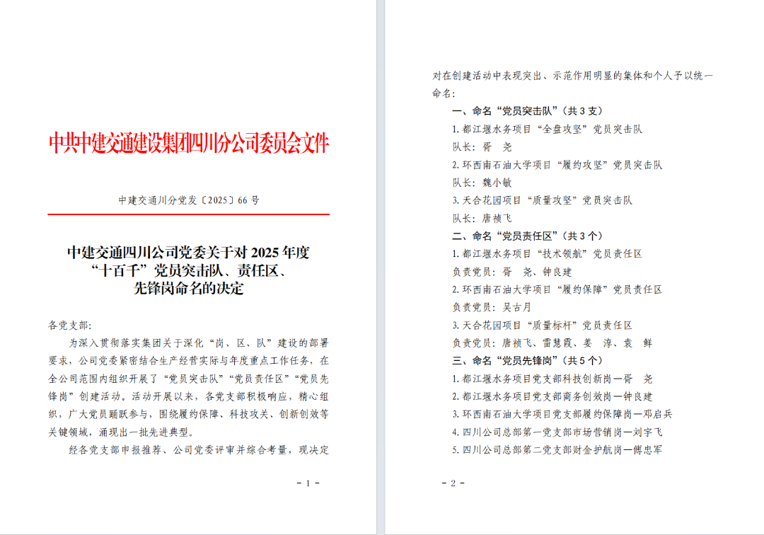 公司党委不断激发基层党组织的生机与活力,设立党员责任区、示范岗89个,组建突击队34支,在重大项目攻坚中充分发挥党员先锋模范作用。深化“一支部一特色”创建,绛溪三线项目党支部打造“菜园子”工程,节约成本并增强团队凝聚力;都江堰水务项目党员突击队攻克技术难题2项,节约成本55.08万元,保障7个重要节点按期交付。