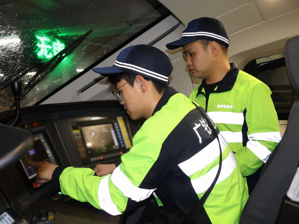 在不足3平方米的动车组司机室里,何东东和潘梓帆对设备进行全面“号诊”。两人配合默契,不到十分钟就完成了数据版本的更新与试验。