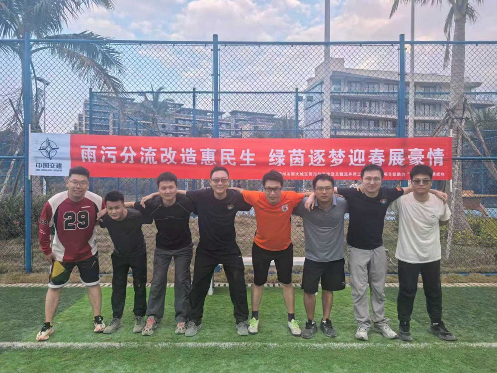 人民交通讯(韩杨)儋州的冬,不见萧瑟,惟余清和。岁末的雨水沿着新铺设的管道悄然流淌,如同这座城市绵长而平稳的脉搏。而在距离现场不远处的绿茵场上,另一股细流正悄然汇入这脉动之中——足球在草地上滚动,呼喊声如潮汐起伏。这是一场奇妙的相遇:地下,雨污分流的脉络正在延伸;地上,关于奔跑与梦想的故事已然展开。年初,那大镇“自贸逐梦 绿茵聚力”迎春杯五人制足球赛拉开帷幕。赛事的初衷简单而温暖,为寻常巷陌的人们搭建一方奔跑的平台,让社区的居民、农场的职工、村里的年轻人,在绿茵场上相遇相知。而在所有参赛队伍中,东风社区代表队的合影尤为特别,运动员身后站立的不是教练,而是来自中交的建设者们。