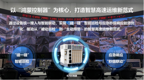 上述场景并非演练,而是广东阳信高速智慧隧道项目通车运营后的一幕突发险情。助力工作人员第一时间发现险情、成功化解潜在通行危机的,正是开鸿智谷基于开源鸿蒙操作系统自主研发的国产化核心控制设备——“在鸿控制器”。