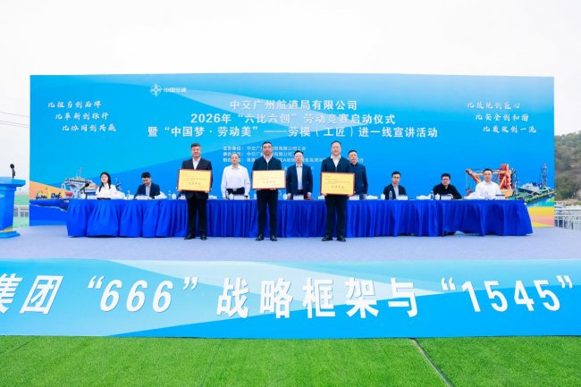 人民交通讯(韩杨 通讯员:张立伟、林振宇、罗静毅)3月30日,中交广航局2026年“六比六创”劳动竞赛启动仪式暨“中国梦·劳动美”——劳模(工匠)进一线宣讲活动在福建省泉州市泉惠项目举办。中交集团工会联合会副主席、工会联合会办公室主任杨向阳,泉州市总工会三级调研员、机关工会主席王有彪,泉惠石化工业园区管委会副主任邱尚长,广航局党委副书记、纪委书记、工会主席刘晓兵出席活动。