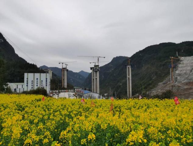 观音桥南面十几米远的山崖上,几株野菊花傲然开放。黄色的花朵在风中摇曳,似乎在向人们传递着春姑娘的消息。顺着山崖往上十几米高的土台上,一片油菜花也不甘落后,竞相绽放,染黄了一片山坡。站在观音桥上,远远地便闻到了沁人心脾的花香。那花香,让人清醒,快珍惜当下的美好时光;那花香,让人留恋,快看看那眉清目秀、朝气蓬勃的花季少年;那花香,让人振奋,快穿上工装,戴上安全帽,扛起经纬仪,冲向我们努力奋斗、拼搏流汗的大桥工地、隧道现场,那里是我们冲锋陷阵、杀敌报国的主战场。