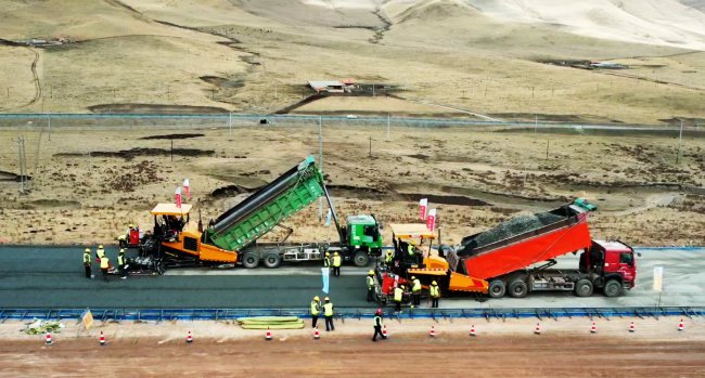 为确保施工顺利,项目团队提前完成原材料检验、配合比设计等准备工作。针对高海拔、昼夜温差大的特点,优化拌和、运输、摊铺、碾压流程,严格把控摊铺厚度、碾压遍数与速度等核心参数,保证路面压实度与平整度达标。