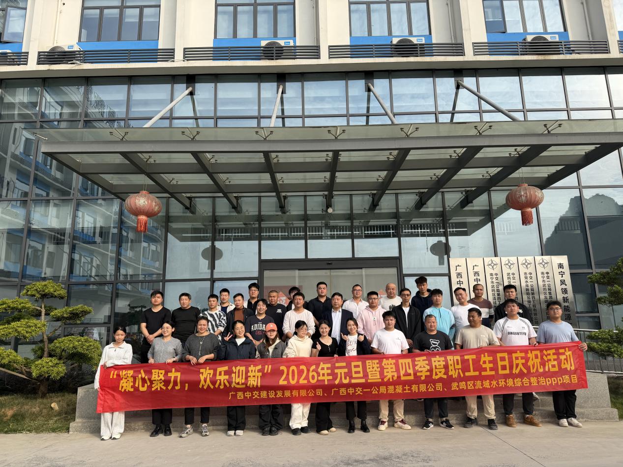 人民交通讯(韩杨)近日,以“凝心聚力,欢乐迎新”为主题的2026年元旦暨第四季度职工生日庆祝活动,在武鸣片区项目员工餐厅外温情上演。中交一公局第四工程有限公司武鸣片区项目的职工与家属们欢聚于此,在笑语欢声中共迎新年、庆生辰。