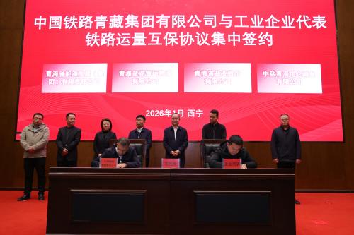 会上,青藏集团公司介绍了2025年集团公司铁路现代物流体系建设及改革情况,并与省内16家重点企业签订了《2026年铁路运量运能互保合同》,共计签订运量1621万吨。
