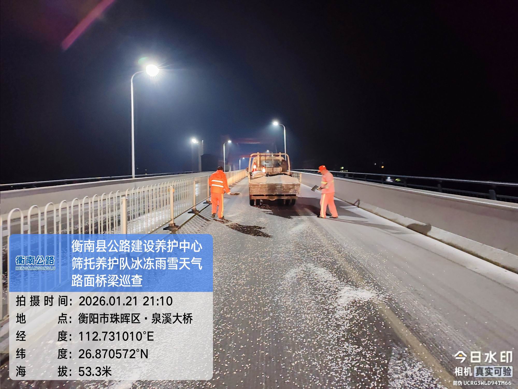人民交通讯(韩杨)近日,受强冷空气影响,衡南县迎来低温雨雪冰冻天气。在这恶劣天气下,衡南县公路建设养护中心迅速响应,全体养护人员积极行动,在全县国省干线公路上展开了一场保障道路畅通、守护民众平安出行的攻坚战役。