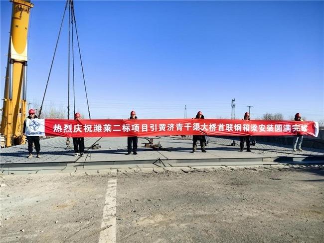人民交通讯(韩杨)1月21日,中交路建山东潍莱改扩建项目引黄济青干渠大桥取得关键进展——大桥右幅钢箱梁已全部架设完成,为后续施工赢得了宝贵时间。