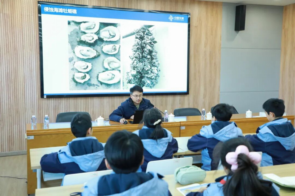人民交通讯(韩杨)近日,中交三航局上海临港海洋生态修复(二标)项目联合上海师范大学附属金山前京中学,开展“万名工程师进课堂”活动。活动以“保护海洋生态 共建美好家园”为主题,工程师们以一堂生动有趣的牡蛎礁科普课,点亮了学生们守护蔚蓝海洋的环保意识,更在他们心中播下了筑梦未来、建设海洋强国的种子。