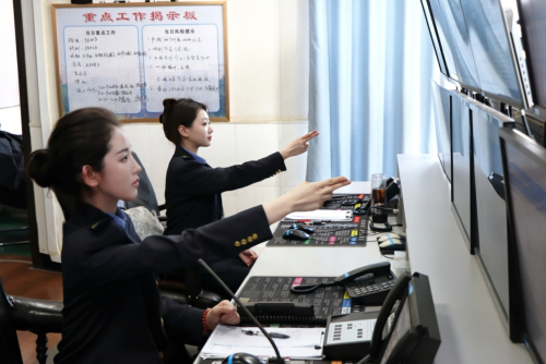 在盘锦站的行车室,盘锦站首位女值班员与女信号员正并肩作战,她们紧盯屏幕,手指同步,默契的沟通与确认。身后的“重点工作揭示表”记录着春运第一天的挑战与应对。春运期间,这个女性班组便以高度的专注与协同,确保了行车组织的安全与高效,展现了新时代铁路女性的卓越风采。