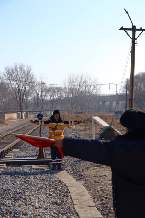 迎风而立,驭车前行。在凛冽寒风中,盘锦站调车班组的成员们正专注于调车作业。醒目的橙红色车头旁,他们的身影坚定而可靠。他们以职责与坚守,保证着一列列货车安全正点运行,为物质运输贡献力量。旗语铮铮,安全为令。红黄信号旗在站场上空划出清晰的指令。这是调车组日常工作的一瞬,更是日复一日的严谨。每一次旗起旗落,都是对万千平安的无声承诺。
