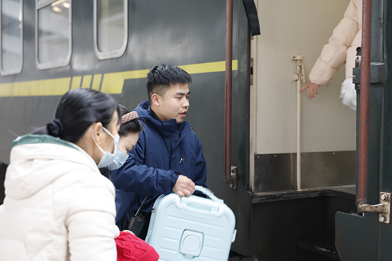 深夜的列车上,当多数旅客在疲惫中昏昏欲睡时,许郅轩的身影依旧在车厢里穿梭。他弯腰捡拾地面上的垃圾,小心翼翼避开旅客;到站前,提前挤到车门口,提醒旅客做好下车准备,有序组织乘降;遇到携带大量行李的旅客,他主动上前帮忙提拿行李;面对旅客的疑问,他耐心细致地解答,用温和的语气回应着旅客的诉求。