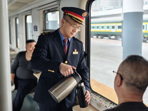 为更好地服务旅客,安福生的乘务包里总是备着常用药品、针线包和儿童玩具,被同事们笑称为“百宝箱”。一位常坐这趟列车的旅客说:“安车长记性特别好,上次我随口提了句腰疼,他下次出乘时就特意给我带了个热水袋,这样的服务真让人心里暖乎乎的。”