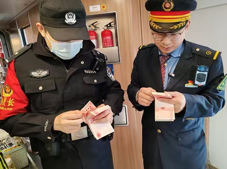 当日,李明鑫按作业标准巡视车厢,行至1号车厢4D座位时,发现一个无人认领的黑色手提包。凭借多年乘务经验,他判断这是旅客匆忙下车时遗落的贵重物品,当即妥善保管,并第一时间通过列车客运终端查询车票信息,同步联系列车乘警到场协同处置。在乘警见证与配合下,工作人员快速联系上失主,经双方共同清点核对,包内装有现金3.5万元、银行卡10张,所有物品完好无缺、无一丢失。
