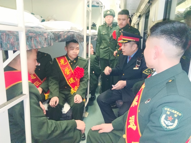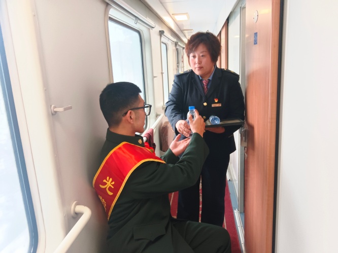 运行途中,列车长韩明海深入车厢,面向老兵开展安全注意事项讲解和安全防火宣传,全面筑牢旅途安全防线。