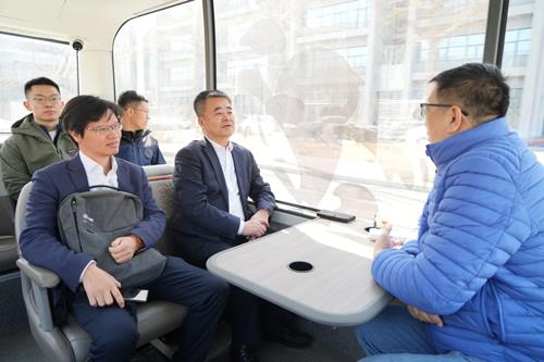 调研期间,秦岭总经理一行人员搭乘自主式交通试验装备先后参观了科研团队实验室及工程研究中心科教展厅。参观过程中,详细听取了研究院在绿色航运、智慧港口、航运金融、多式联运等核心领域的研究成果介绍,全方位了解研究院在航运科技领域的深耕与突破。