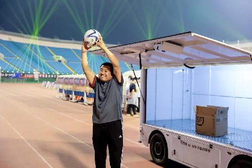 开幕式开始,11支特色方队依次登场。一线小哥、销售先锋、家属伙伴、无人车方队等,每一支方队都藏着顺丰人的坚守与热爱。13支参赛劲旅身着专属队服帅气亮相,从辽宁的丰驰辽顺队到各区域强队,口号铿锵、气势拉满。其中,丰驰辽顺队高喊口号:“顺丰聚力,辽顺同心,以球会友,共展风采”,尽显顺丰人的精气神。