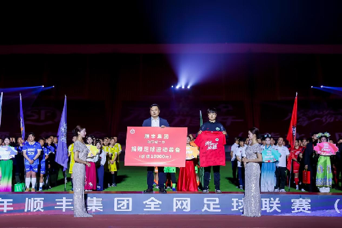 开幕式现场,山东顺丰速运有限公司总经理范帅代表公司向历城二中捐赠了足球运动装备,历城第二中学女足教练刘文慧代表历城二中接受捐赠,并回赠了一件孩子们的冠军签名球衣。另外,现场还特别设置了球队特产互赠环节,各队均带来了特色礼品,以礼传情。东道主泰山FC队为各支球队送上清甜西瓜,辽宁丰驰辽顺队则带来了享誉全国的大连樱桃,尽显顺丰家人情谊。