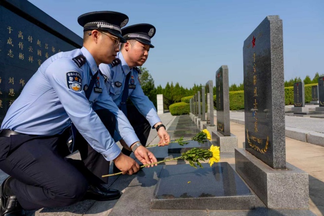 大家还绕碑瞻仰,依次向革命烈士敬献鲜花,表达对先烈们的无限怀念和崇敬之情。民警们纷纷表示,此次活动是一次思想洗礼和精神淬炼,以公祭之名回望历史,既是为了铭记革命烈士的丰功伟绩,更是让我们接过红色接力棒,去开创崭新的未来。作为新时代移民管理警察,必将弘扬践行革命精神,高效助力口岸高质量发展,维护国门安全稳定,为移民管理事业发展新蓝图增光添彩。