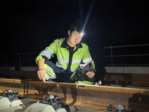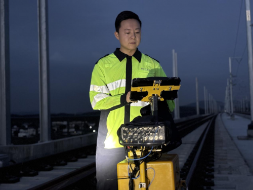进入联调联试阶段以来,李好白天协调处理各类问题,夜间与工友现场开展钢轨伤损检查、复核。“钢轨探伤工作就是用探伤仪给钢轨做体检,就像医生使用听诊器给病人检查身体一样,我们使用仪器可以‘听诊把脉’出钢轨内部的缺陷。”李好说。