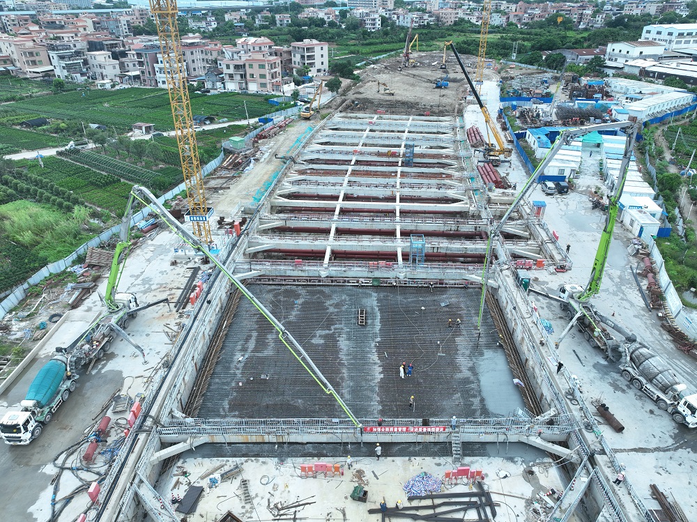 据悉,此次完成浇筑的佛尘路北暗埋段第10段,地处整个项目建设的咽喉要道,是实施佛陈路导改方案的必经之地。该段顶板浇筑的顺利完成,意味着成功“解锁”了后续作业面,为隧道工程的全面推进创造了先决条件。