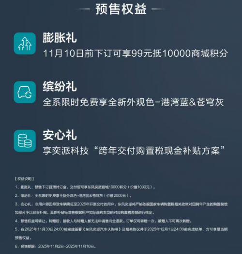 对于首次购车的年轻人而言,eπ007+提供了一个“一步到位”的选择:既能满足日常通勤与经济性需求,也能在智能体验与驾驶乐趣上带来惊喜。该车已于2025年11月10日在深圳正式上市,限时焕新价:13.99 万元起。为回馈用户,官方推出限时购车豪礼:截至2025年11月30日前下单,可享超级置换补贴5000元、整车及三电终身质保、新车色限时免费升级等,总计至高价值46800元的八重豪礼。