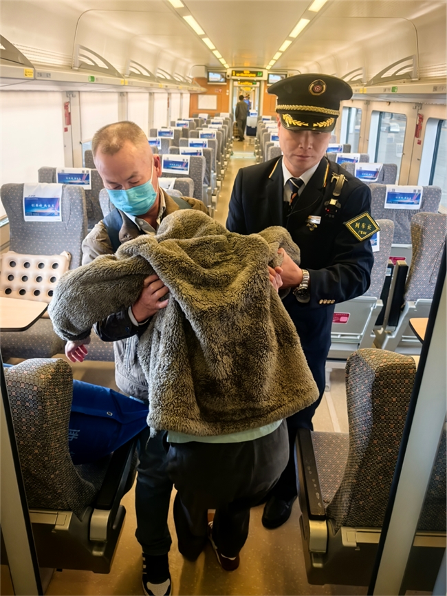 人民交通讯(韩杨 通讯员:邹亚利) “来,我帮您把这厚外套披好,车厢里空调足,别着凉了。”近日,D593次列车上,列车长蔡燎原半蹲下身,轻轻将毛绒外套拢在老年旅客李奶奶的肩头,这一幕,让同行旅客忍不住掏出手机记录下来。