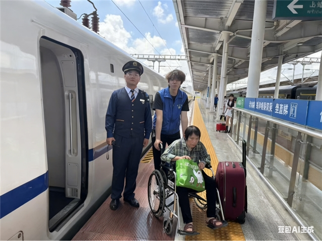 人民交通讯(韩杨 通讯员:邹亚利) 近日,D3812次列车正点驶入百色站,站台客运员快步上前,向列车长刘野交接了一位特殊旅客,步履蹒跚,手里还攥着皱巴巴的换乘单据,