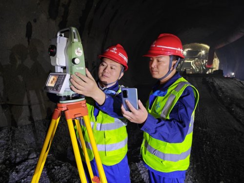 项目员工用先进仪器助力杉木岭特长隧道精准贯通