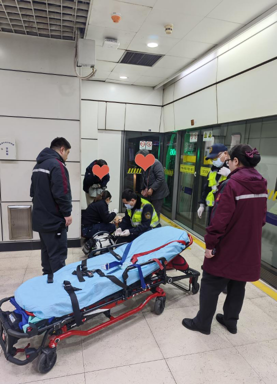 在等待救护车期间,任站长持续关注乘客状态,不断安抚家属情绪。9时19分,120救护车抵达车站,急救人员对乘客进行初步检查后,随即将其送往龙华医院进一步救治。