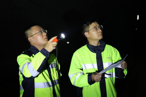 隧道内,风机的嗡嗡声在通道内回荡,潮湿的空气里夹杂着金属的微凉,他们的脚步声与设备的轻响交织,在隧道中传递。